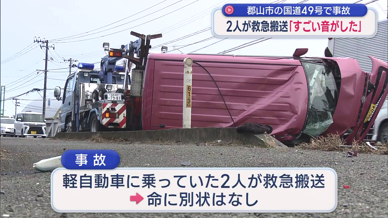 3日午後、郡山市の国道49号でトラックと軽自動車が衝突する事故があり2人が救急搬送されました。【リポート高橋健太記者】「横転した自動車の窓ガラスは大きく割れそしてフロント部分も壊れています」警察などによりますと3日午後1時半ごろ郡山市田村町の国道49...