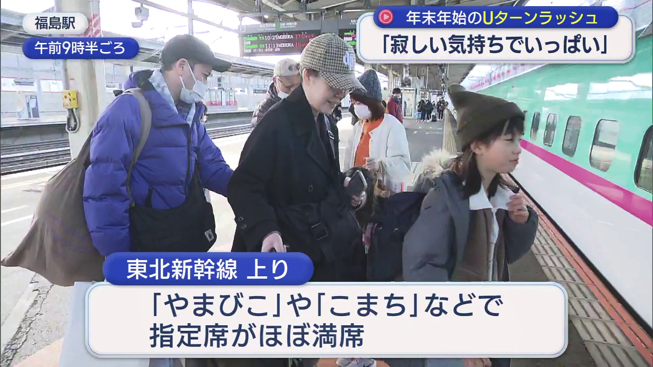 年末年始をふるさとで過ごした人たちのUターンで新幹線の指定席がほぼ満席となるなど混雑が続いています。JR東日本によりますと東北新幹線の上りは4日も「やまびこ」や「こまち」などの指定席がほぼ満席となっています。福島駅の新幹線ホームには家族や友人との別れ...
