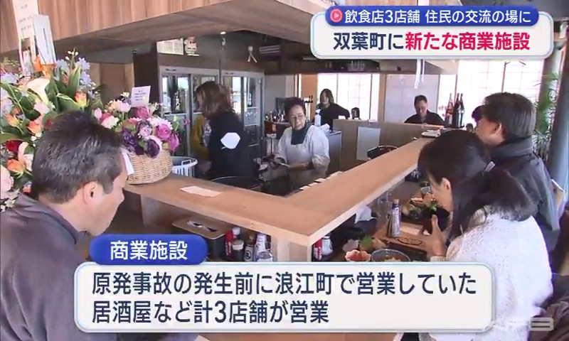 双葉町ににぎわいを生み出そうと、新たな商業施設が14日オープンしました。双葉駅の東口にオープンした公設民営の商業施設は、駅前通り周辺ににぎわいを生み出そうと双葉町が整備しました。商業施設では、原発事故が起きる前に浪江町で営業していた居酒屋のほか、県外...