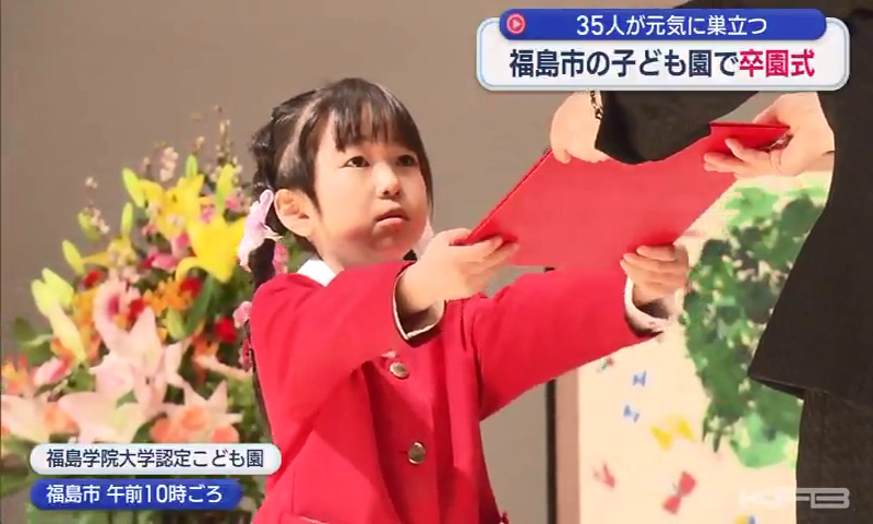 福島市の認定子ども園で卒園式が行われ、35人の園児が元気に巣立ちました。福島市の福島学院大学認定子ども園では、35人の園児一人ひとりに修了証書が手渡されました。二谷京子園長から、「小学校でも自分の良さをたくさん出してほしい」とはなむけの言葉が贈られた...