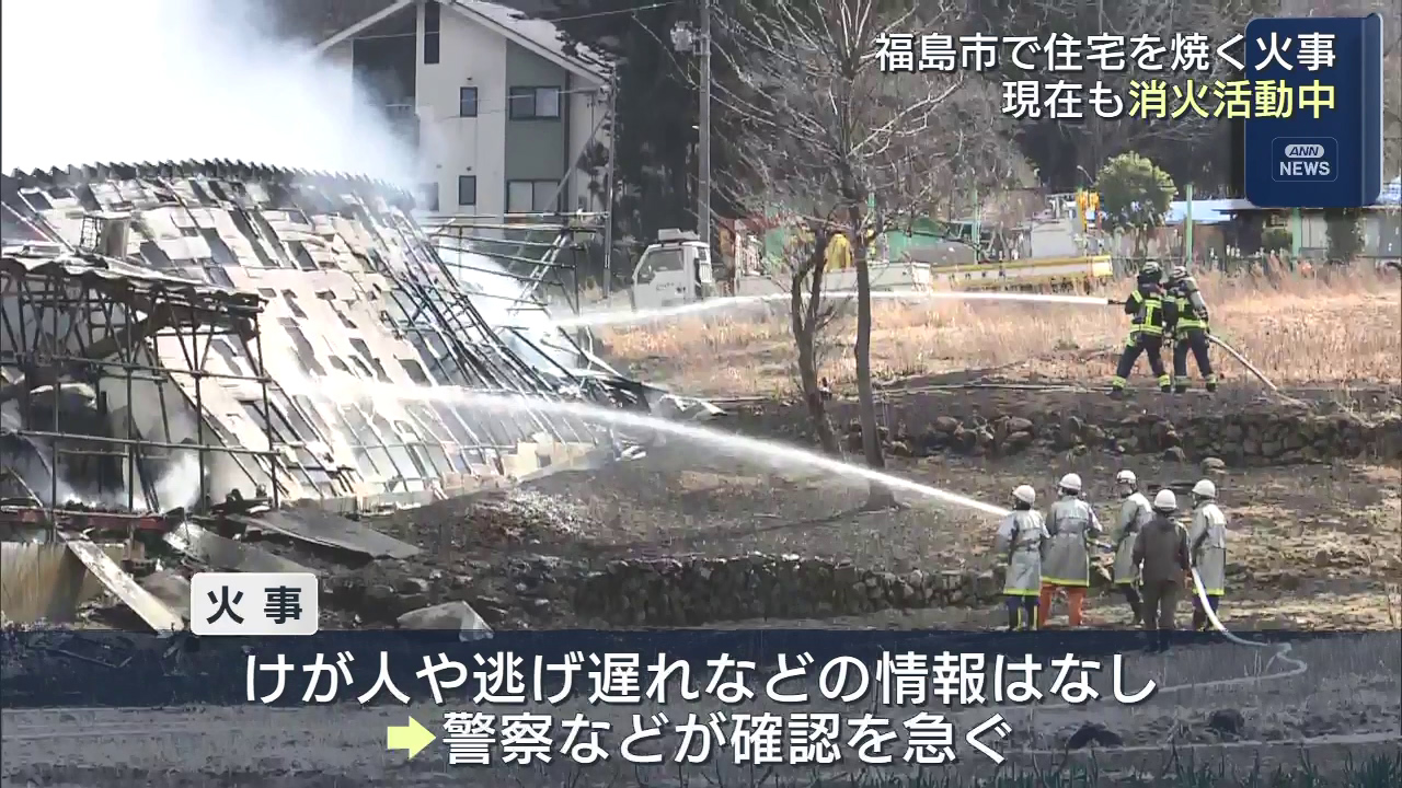 福島市の住宅で火事があり、消防が消火活動を行っています。火事があったのは福島市大波の住宅とみられる建物です。消防によりますと24日午前10時半ごろ、近くに住む人から「炎と黒煙が見える」と119番通報がありました。燃えているのは、2階建ての住宅とみられ...