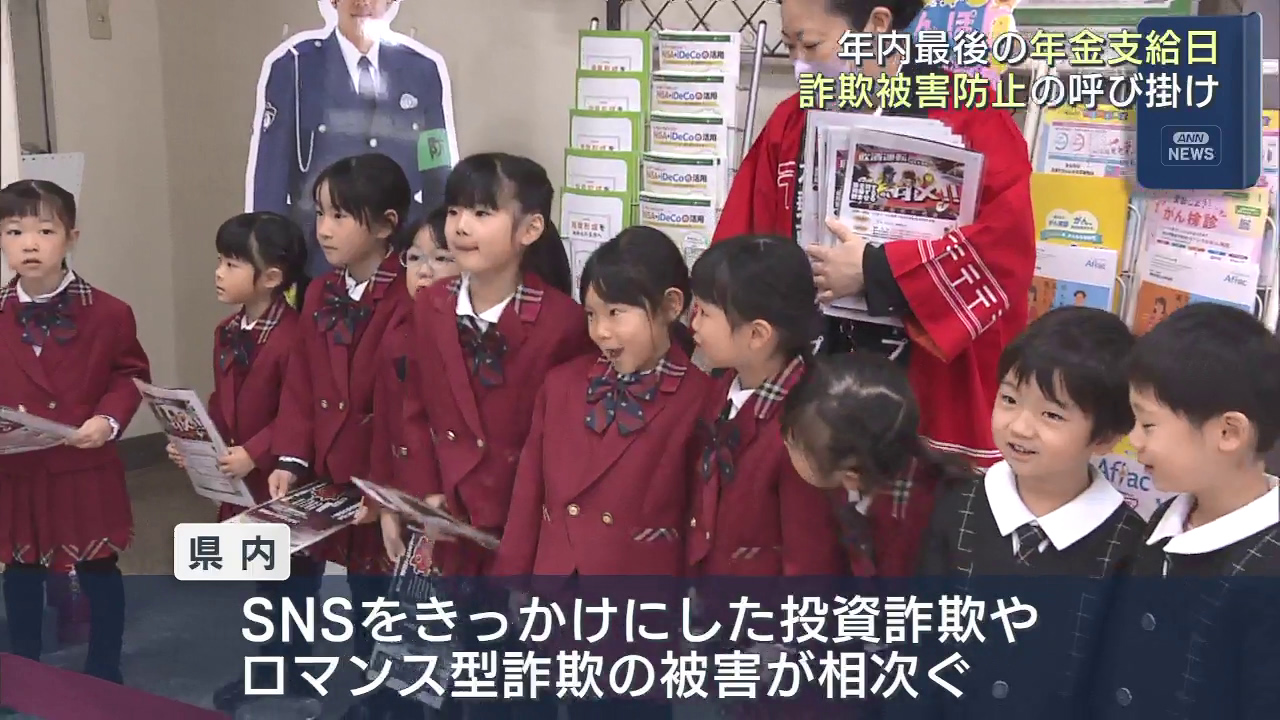 郡山市の郵便局では2025年最後の年金支給日に合わせ、園児が詐欺被害に遭わないよう利用者に呼び掛けました。詐欺被害防止を呼び掛けたのは、郡山市の「ヒューマニティー幼保学園」に通う子どもたち。ATMの前で利用者に声を掛け、チラシなどを配りました。利用者...