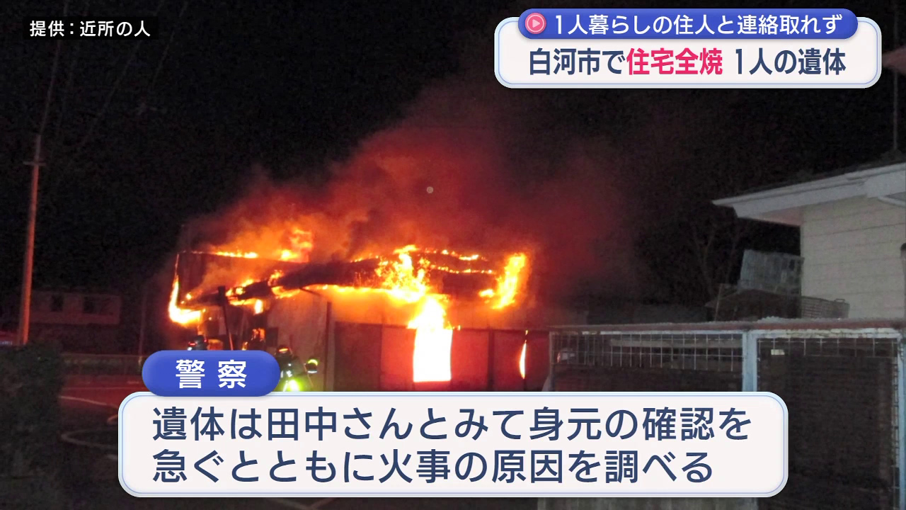未明の火事…白河市で住宅全焼・焼け跡から遺体 一人暮らしの男性が不明(福島)