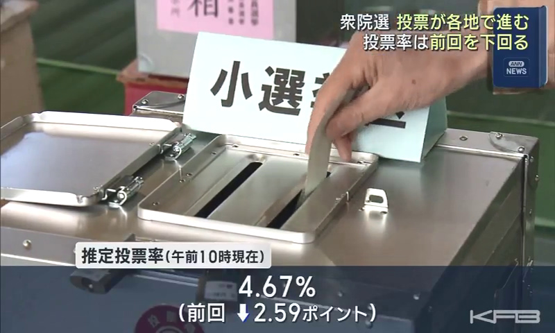 衆院選の投票が県内各地で進む 午前10時現在の推定投票率は前回を下回る 4選挙区に合わせて15人が立候補(福島)