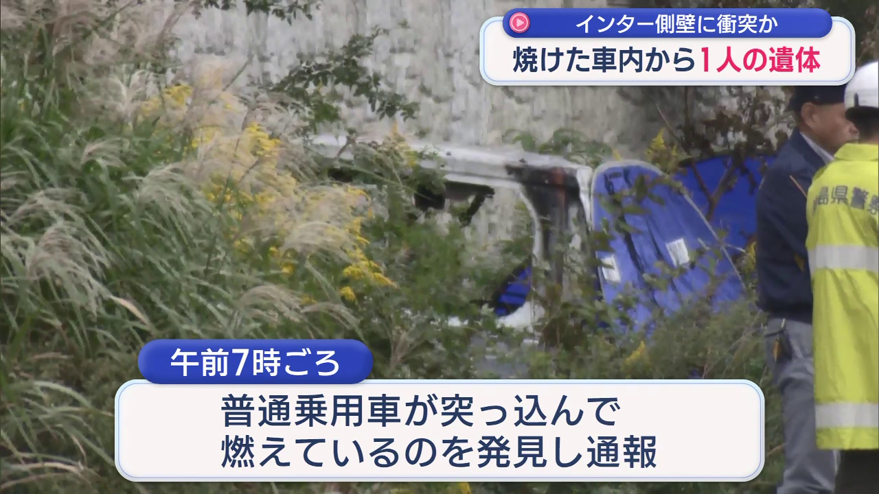桑折町で11日朝、インターチェンジの外壁に車が突っ込んで炎上しているのが見つかり、1人が死亡しました。警察によりますと、11日午前7時ごろ、桑折町界の町道を通りかかった人が、東北中央道の伊達桑折ICの側面の壁に、普通乗用車が突っ込んで燃えているのを見...