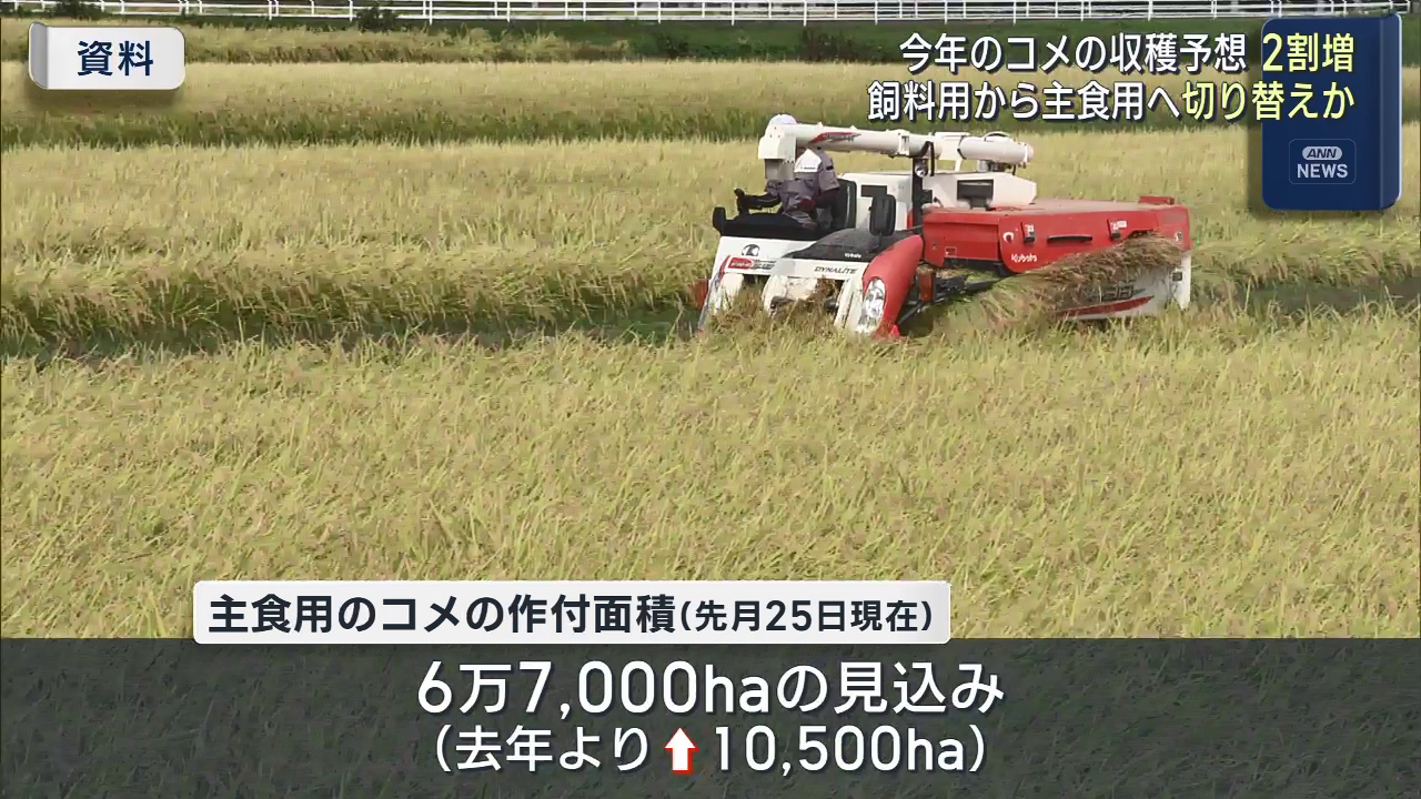 県内における2025年の主食用のコメの収穫量は、2024年に比べ2割ほど多い約36・8万トンになる見通しであることが分かりました。東北農政局によりますと、9月25日現在、県内の主食用のコメの作付面積は2024年に比べて1万500ヘクタール増え、6万7...