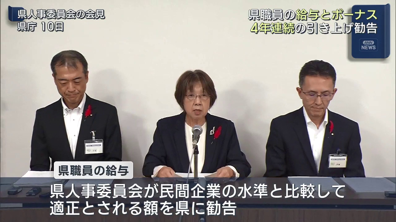 県の人事委員会は、県職員の給与とボーナスを引き上げるよう、県に勧告しました。県職員の給与は、県の人事委員会が民間企業の水準と比べて適正とされる額を県に勧告しています。人事委員会は県職員の月給を、1991年以来最大の上げ幅だった2024年を上回る、平均...