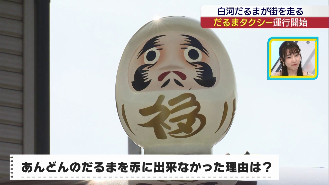 白河市のシンボル、白河だるまをモチーフにしたご当地タクシーの運行が、3日から始まりました。白河市に新たに設立されたタクシー会社が運行を始めた、その名も「だるまタクシー」。屋根には白河だるまの行灯がついています。【内田智之アナウンサー】「屋根についてい...