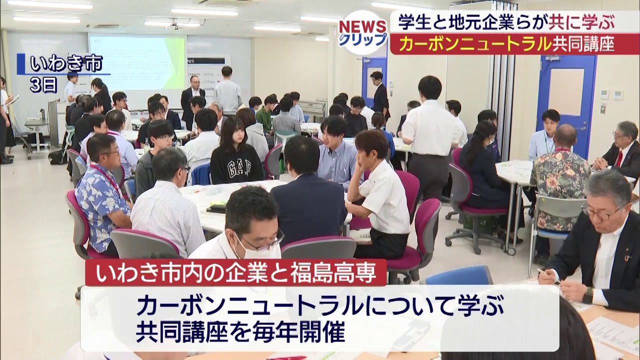 温室効果ガス排出実質ゼロを目指す、カーボンニュートラルに理解を深める講座が行われています。東洋システムなどのいわき市内の企業と福島高専は、カーボンニュートラルについて学ぶ共同講座を毎年、開いています。初回の講座は先週行われ、参加した人たちがカーボンニ...