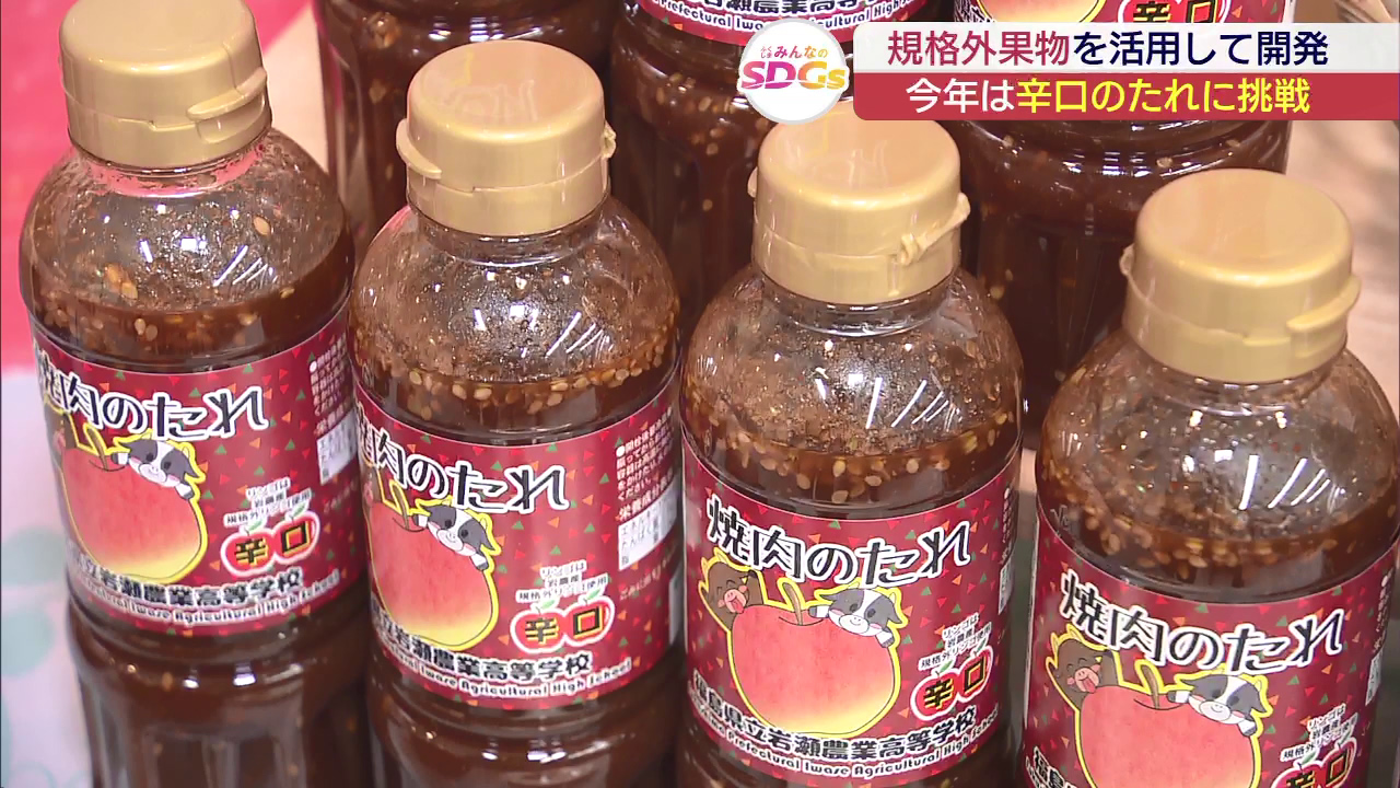 県内のSDGsに関する話題をお伝えします。17の目標のうち12番の、「つくる責任つかう責任」に関して。農業高校の生徒たちが2025年も規格外の果物を使った商品の開発に挑戦しました。校庭で仲良く焼肉を楽しむ生徒たち。焼いた肉にかけているのは、岩瀬農業高...