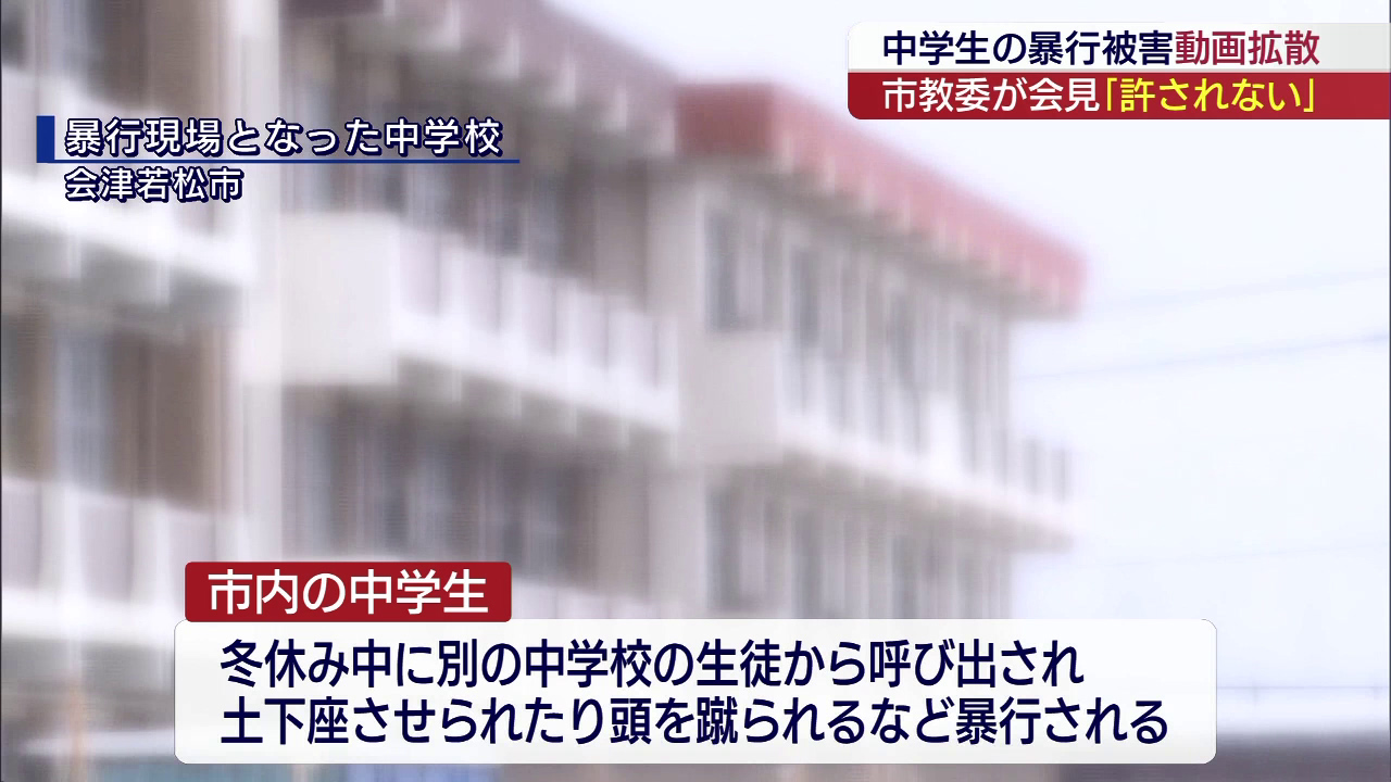 SNS上で拡散され、真偽不明の情報が飛び交っている、会津若松市の中学生が暴行されている動画について。市教育委員会が会見を開き、市内の中学生が別の中学校の生徒から呼び出されて暴行されていたことを認めました。この動画をめぐっては警察が関係者からの被害届を...
